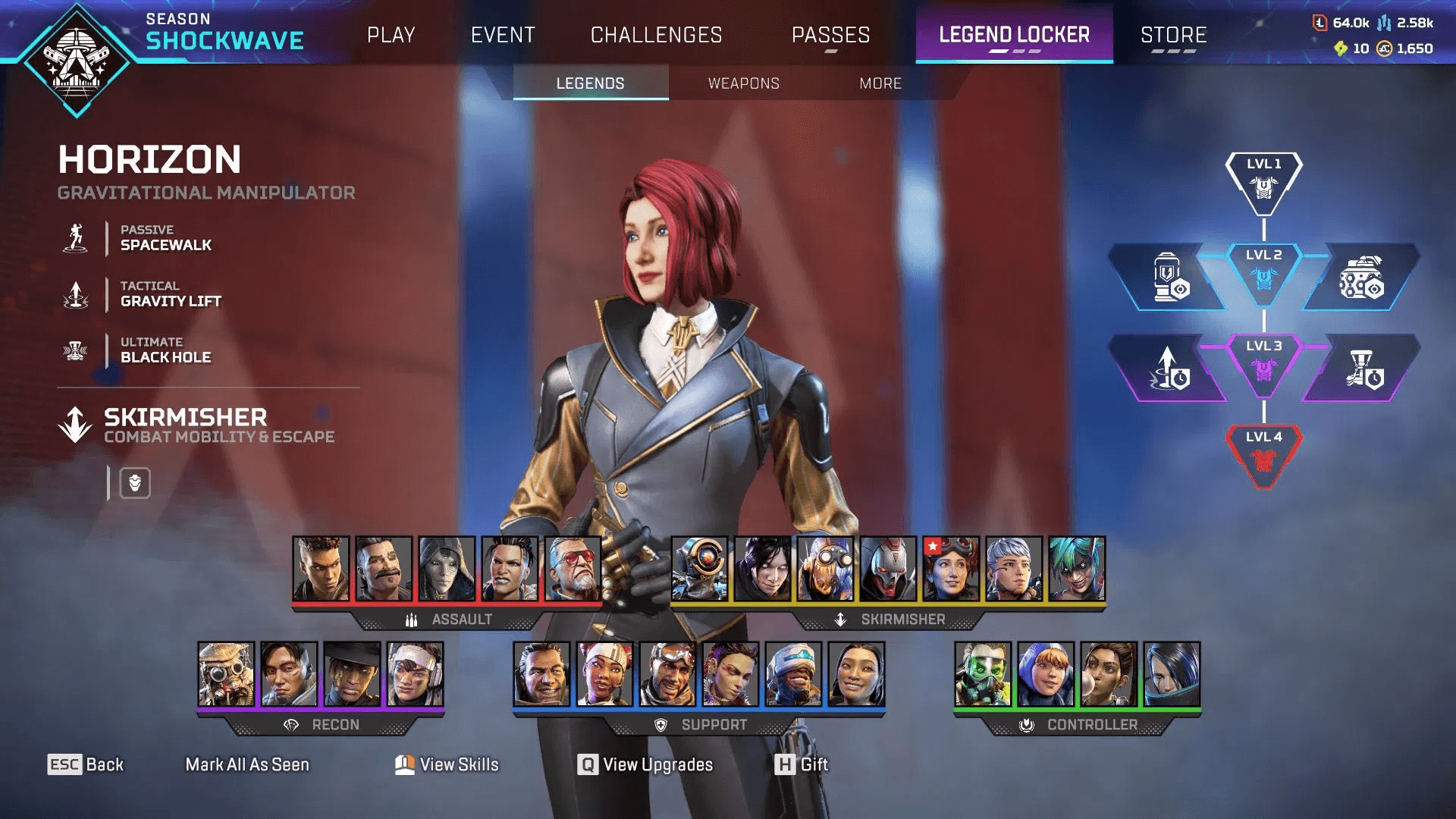 Horizon manipulates gravity and movement. She uses lifts and black-holes to shift fights vertically. Players who like clever movement and vertical plays pick Horizon for that special feel.